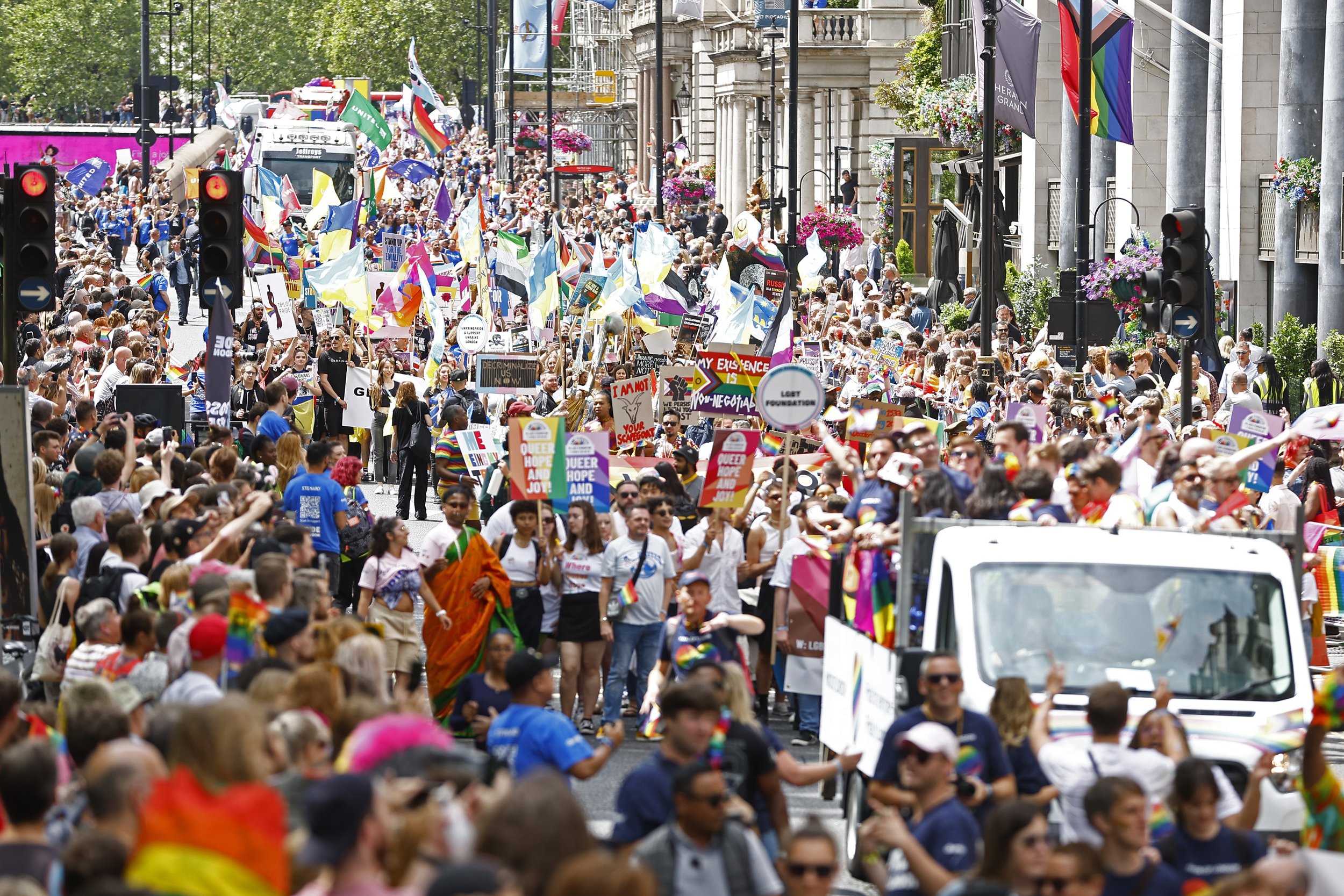 A: Pride in London provides parade stewards along the entire route in addition to having SIA-registered security stewards. Metropolitan Police provide an operational presence throughout the day.